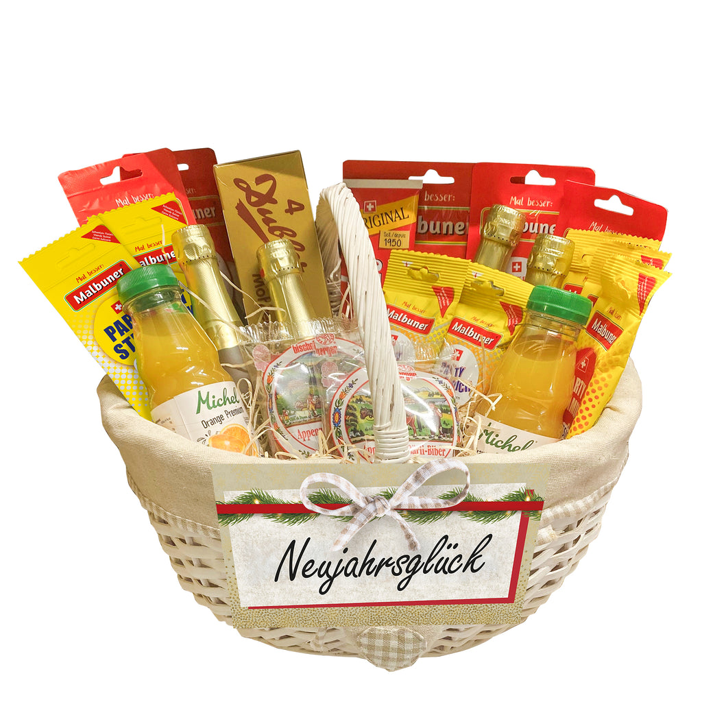 Un coffret festif contenant une sélection raffinée de spécialités, d'en-cas salés et de douceurs sucrées. Idéal pour commencer la nouvelle année avec gourmandise et la célébrer ensemble.